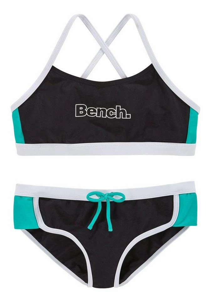 Athletischer Look mit hohem Tragekomfort: Der Bustierbikini von Bench besticht mit einem elastischen Material und einer sportlichen Optik. Letztere hat der Bikini den hinten gekreuzten, verstellbaren Trägern, dem Logoprint und den kontrastfarbenen Abschlüssen zu verdanken. Eine dekorative Schleife am Bikinislip ergänzt den Style perfekt. Auch bei der Bademode keine Kompromisse eingehen – mit dem Bustierbikini von Bench! Obermaterial: 80% Polyamid, 20% Elasthan (Xtra Life LYCRA®), Futter: 100% Polyester.