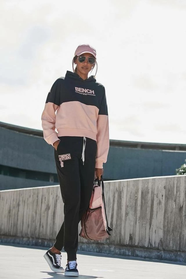 Mit dem farbgeblockten Hoodie von Bench bringst du den perfekten Mix aus Athletik und Lockerheit in dein Outfit. Das mit einem Logodruck auf der Brust versehene Sweatshirt mit Kapuze, Kordelzug und gerippten Bündchen bietet dir nicht nur einen angesagten, sportlichen Look, für den auch Details wie der Logoschriftzug in der Kapuze sorgen. Durch das weiche Jerseymaterial aus Baumwolle und Polyester und den kurzen Oversize-Schnitt ist dieser Style auch noch richtig angenehm zu tragen – vor allem in Kombination mit einer der dazugehörigen Sweat- oder Radlerhosen. Hosen und Hoodie von Bench folglich am besten gleich zusammen bestellen!