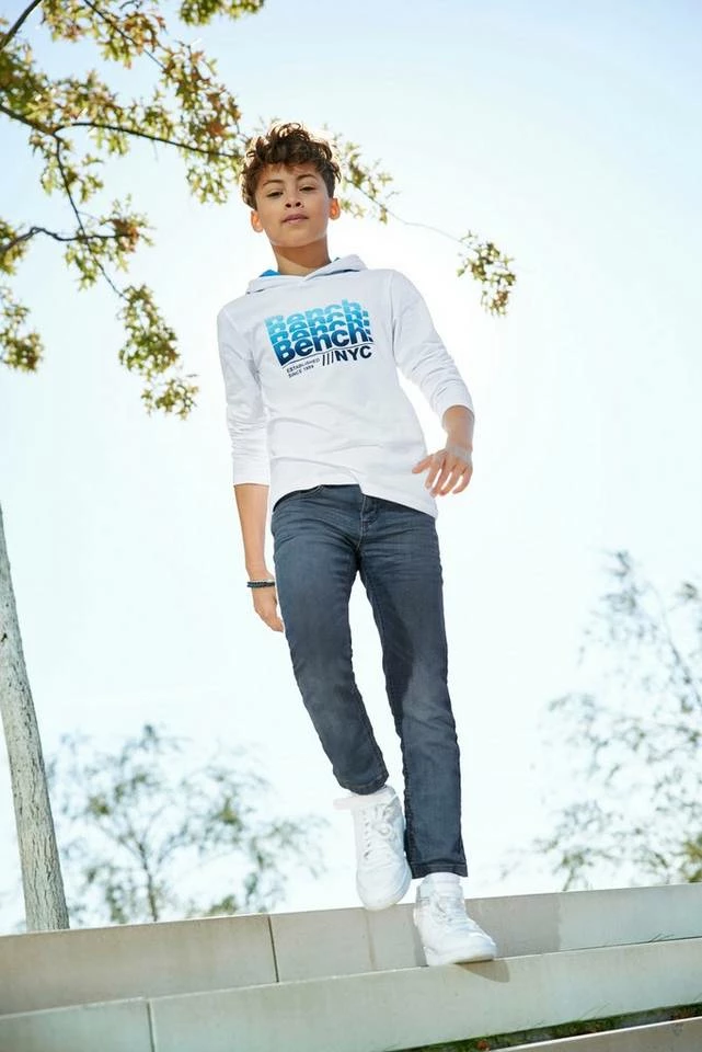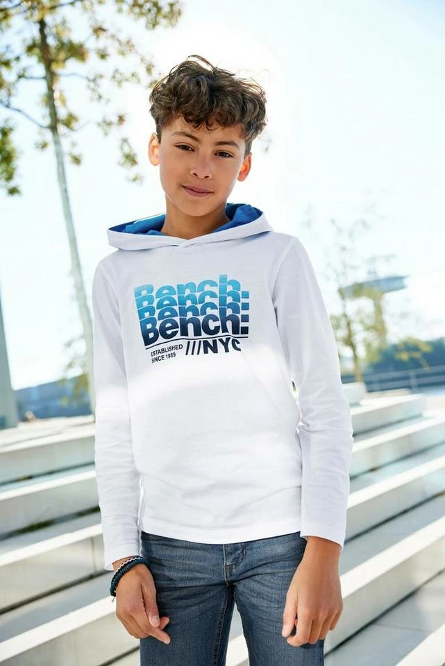 Das Kapuzenshirt von Bench. ist ein stylisches Essential, um den persönlichen Stil zu finden. Durch den Aufdruck wirkt es peppig und dynamisch. Es ist basic geschnitten, sodass sich Teenies frei bewegen können.