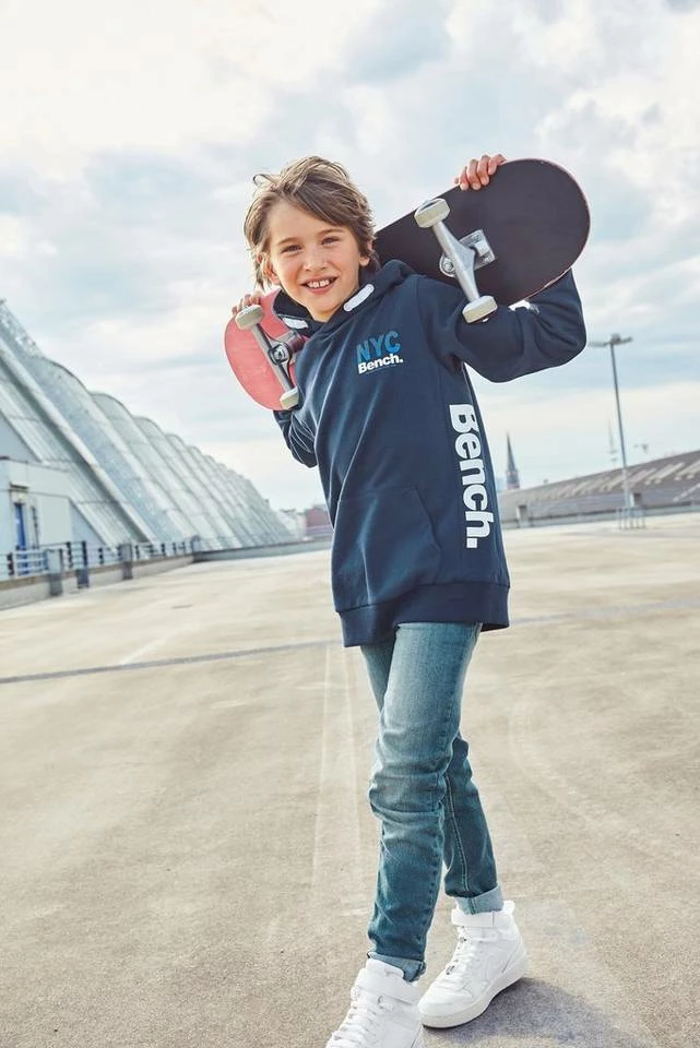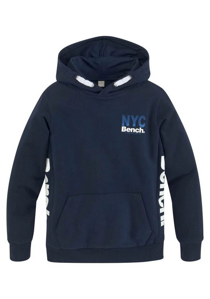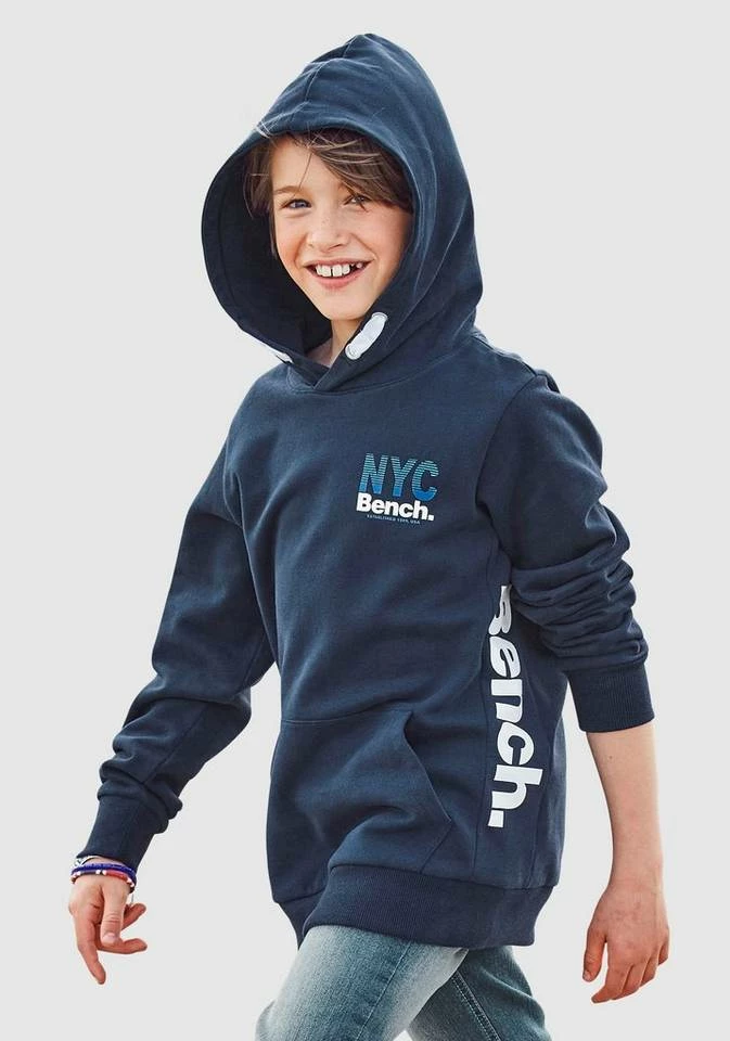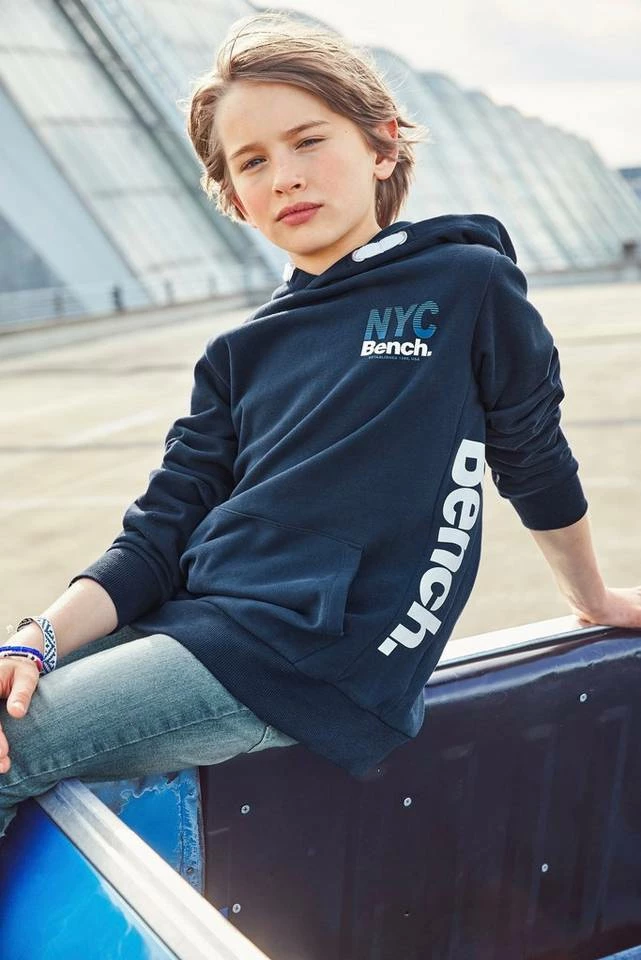 Ob Mode-Blogger oder nicht — dieses Kapuzensweatshirt der Marke Bench. finden alle Jungs stylisch. Mit dem Aufdruck sieht es trendig und ausgefallen aus. Die Ärmel enden in einem Rippbündchen. Es ist basic geschnitten, sodass die Bewegungsfreiheit nicht leidet. Mit der Kängurutasche, die vorne am Bauch aufgenäht ist, ist der bequeme Hoodie-Look komplett.