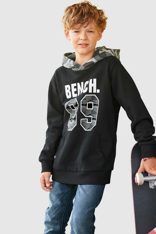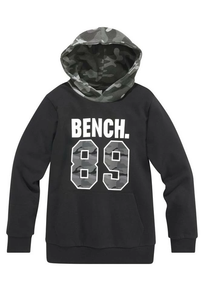 Ob Mode-Blogger oder nicht — dieses Kapuzensweatshirt »Kapuze tarnfarben gemustert« der Marke Bench. finden alle Jungs stylisch. Es wirkt mit dem Aufdruck stylisch und cool. Die Ärmel enden in einem Rippbündchen. Es ist basic geschnitten, sodass die Bewegungsfreiheit nicht leidet. Mit der Kängurutasche, die vorne am Bauch aufgenäht ist, ist der bequeme Hoodie-Look komplett.