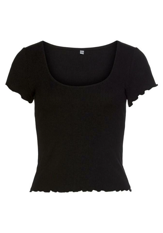 Kurz ist Trumpf! Das Shirt von Bench begeistert mit seiner angesagten Länge und den femininen Details. Der Schnitt wirkt schön sommerlich und ergänzt dabei die figurbetonte Passform. Doch nicht nur deine Körpermitte zeigt mit dem Kurzarmshirt Haut. Auch dein Dekolleté darf sich gerne etwas freizügiger präsentieren. Dafür steht dir der tiefe Rundhalsausschnitt zur Verfügung. Ein bisschen Extravaganz und Raffinesse bringen die Babylocksäume an den Abschlüssen ins Spiel. Freu dich auf ein außergewöhnliches Oberteil, das dir durch seine gelungene Optik und die angenehme Rippware in weicher Qualität einen tollen Look beschert. Mit dem Shirt von Bench machst du alles richtig.