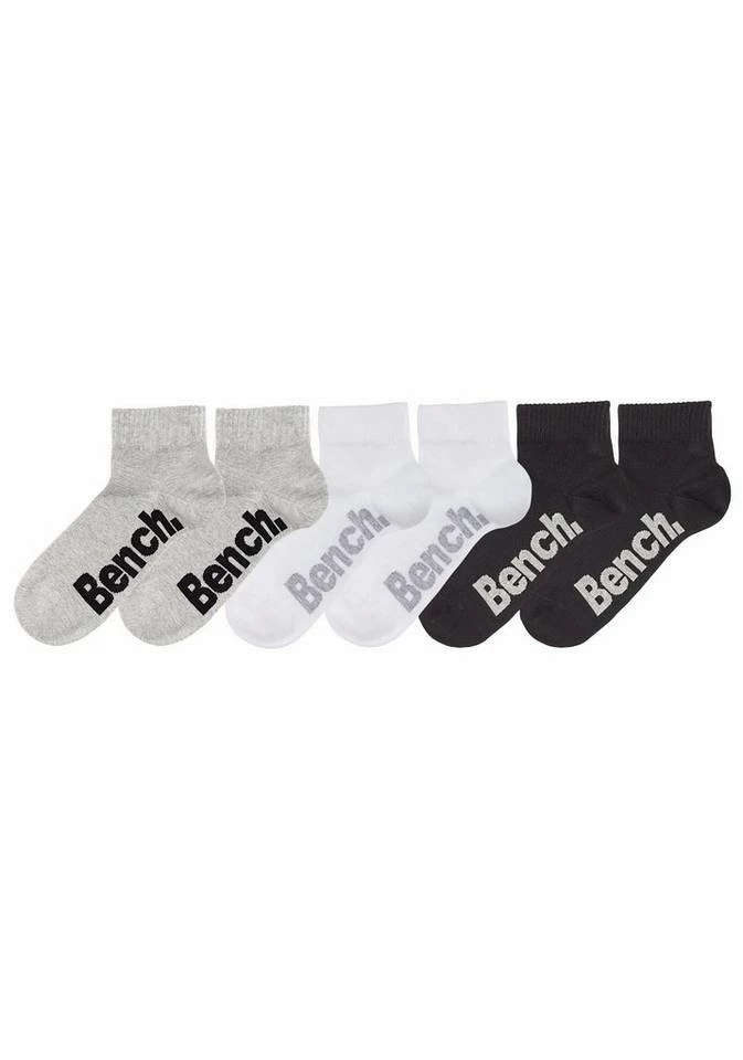 Sportliche Herren-Kurzsocke im 6er-Sparpack von Bench. Melange-Qualität mit großem eingestrickten Logo. Gerippte Bündchen sorgen für ein komfortables unkompliziertes Tragegefühl ohne lästiges Verrutschen. Die feuchtigkeitsregulierende Materialkomposition schafft ein fußgesundes Klima. Kurzsocken enden in Knöchelhöhe. Ideal geeignet für Sneaker und Sportschuhe.