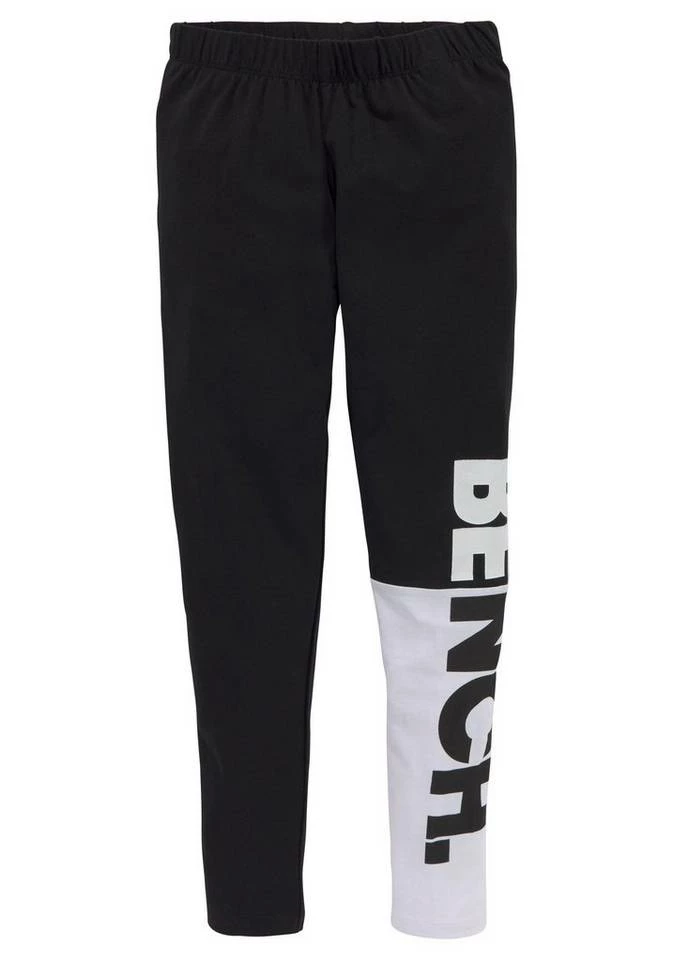 Applaus für diese schicken Leggings von Bench. Die schmale Jerseyhose fällt dank des Logoprints am Bein sofort ins Auge. Dafür sorgt auch der zweifarbige Colorblocking-Look, der richtig stylisch ist. Der elastische Bund mit Tunnelzug bietet einen guten Sitz – genau wie die elastische Stoffqualität, die die Mädchenleggings superangenehm macht. Zusammen mit einem T-Shirt mit Fledermausärmeln kommt die Mädchenhose richtig groß raus. Ein echter Tipp für stilbewusste Mädchen: die Leggings von Bench.