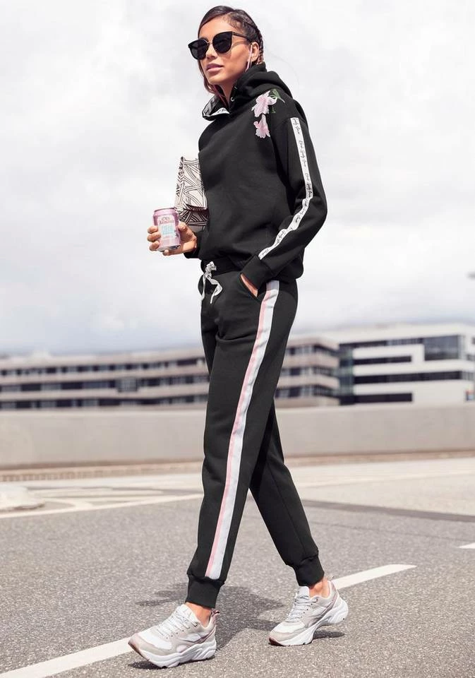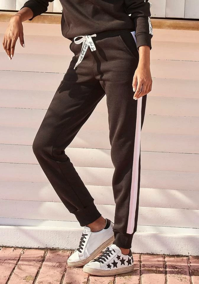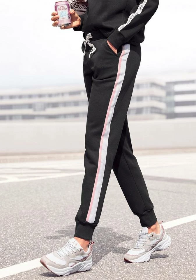 Was wäre Homewear ohne eine bequeme Jogginghose mit Coolness-Faktor? Mit der Relaxhose von Bench hast du so einen Kandidaten in deinem Schrank. Die Hose versüßt dir mit ihrer angenehm weichen Baumwollmischung jeden Abend auf deiner Couch und begeistert dich mit ihrem tollen Tragegefühl. Über das bedruckte Band im Tunnelzug kannst du die Sweatpants ganz nach deinen Bedürfnissen anpassen. Es ist auch ihr Design, das in jeder Hinsicht überzeugt. Seitliche Streifen und schmale Hosenbeine mit geripptem Abschluss lassen das Modell sportlich wirken. Werfe dich mit einem Sweater und der Relaxhose vojn Bench in Schale, um ein angemessenes Freizeitoutfit zu kreieren.