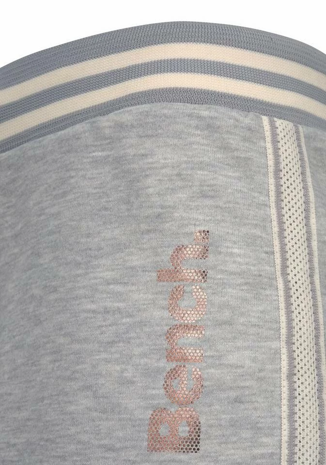 So süß! Die sportiven Shorts von Bench begeistern mit ihrem detailreichen Design, denn die kurze Hose kommt mit einem Ringelbund und einem Kordelzug, seitlichen Meshstreifen und einem glitzernden Logoprint. Die schmale Passform und die extrakurzen Beine der Damenshorts sorgen für einen femininen Look. Dabei garantiert die weiche Maschenware einen anschmiegsamen Tragekomfort. Ob mit einer passenden Zipjacke oder einem schlichten T-Shirt; ob zu Hause, beim Sport, oder am Strand – in den Shorts von Bench macht frau immer eine tolle Figur!