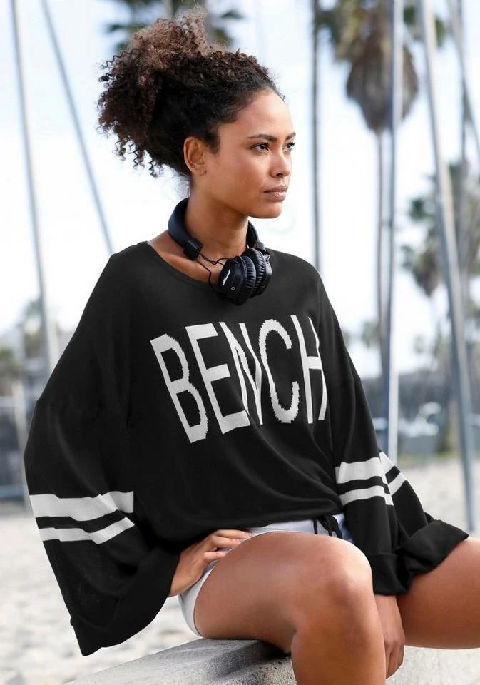 Du bist auf der Suche nach deinem neuen Lieblingspulli? Ein ganz heißer Kandidat für diesen Posten ist der Pullover von Bench. Die lässig überschnittenen Schultern mit dem niedrigen Ärmelansatz machen deutlich in welche Richtung sich das Design des Rundhalspullovers bewegt – nämlich in die Oversizeform. Der legere Look wird von einem großen Logoprint und coolen Streifen auf den Ärmeln aufgegriffen, am Saum befindet sich ein praktischer Tunnelzug. Der weiche Feinstrick rundet den Pulli gekonnt ab. Mit klassischen Jeans, bequemen Sneakers und dem Pullover von Bench gelingt dir ein authentischer Urban-Look.