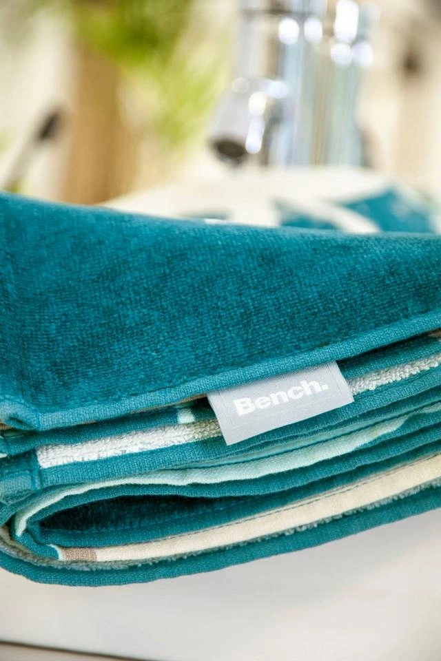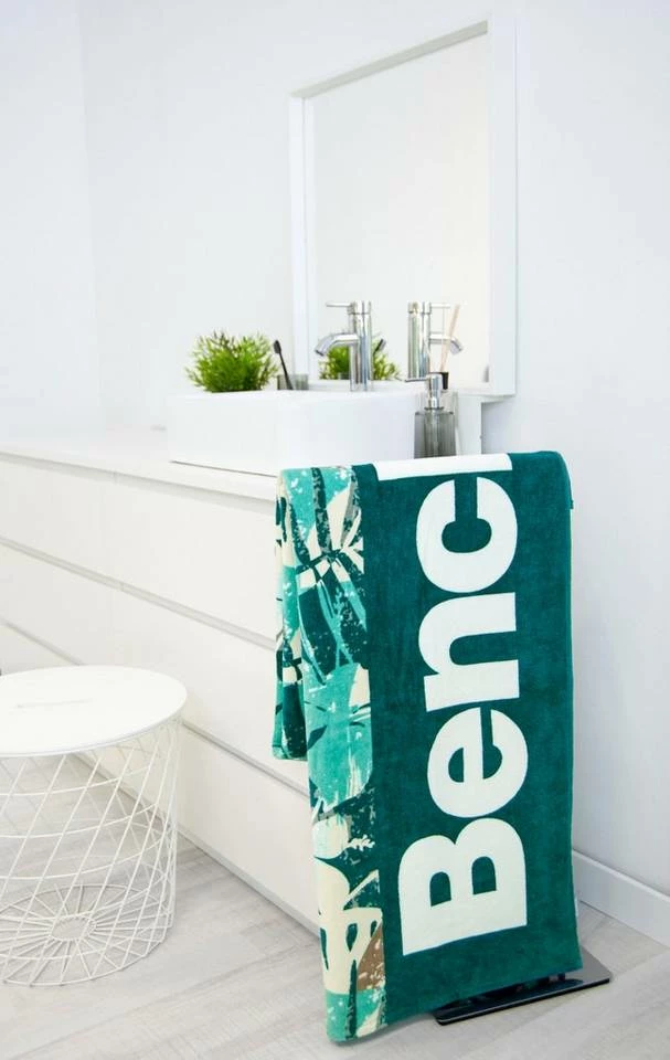 Neben ausgewählten, nachhaltigen Materialien sind sehr gute Arbeitsbedingungen und eine hohe Mitarbeiterzufriedenheit die Grundlage für Qualitätsprodukte. Nur in ausgewählten Fertigungsstätten, die sich der Business Social Compliance Initiative, kurz amfori BSCI, angeschlossen haben, wird dieser Artikel der Bench Home & Living Kollektion hergestellt. Damit nicht genug, der Artikel ist mit STANDARD 100 by OEKO TEX® zertifiziert. Der Zusatz MADE IN GREEN by OEKO-TEX® gibt an, dass das Produkt auf Schadstoffe geprüft wurde und darüber hinaus in umweltfreundlichen und sozial verantwortlichen Unternehmen hergestellt werden. Dieses modern gestaltete Strandtuch / Saunatuch mit einem Bench Schriftzug wird Sie begeistern. Es wurde zu 100% aus Baumwolle (Velours) gefertigt und ist bei 60°C maschinenwaschbar und selbstverständlich trocknergeeigent. Wegen des kuscheligen und weichen Baumwoll-Velours lädt das Handtuch zum Abtrocknen und Einwickeln nach dem Baden ein und wird sowohl in der Sauna, im Schwimmbad, am Strand als auch zuhause im Badezimmer zum tollen Hingucker.