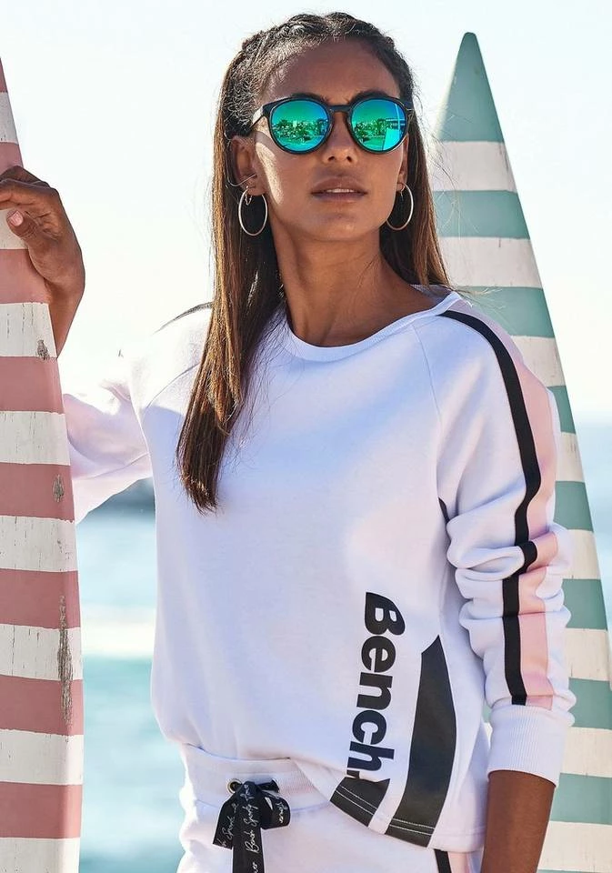 Bench. Sweater kurze Form mit Kontraststreifen Weiß, Schwarz, Rauchrosa