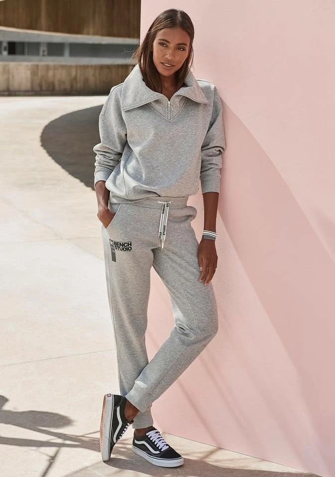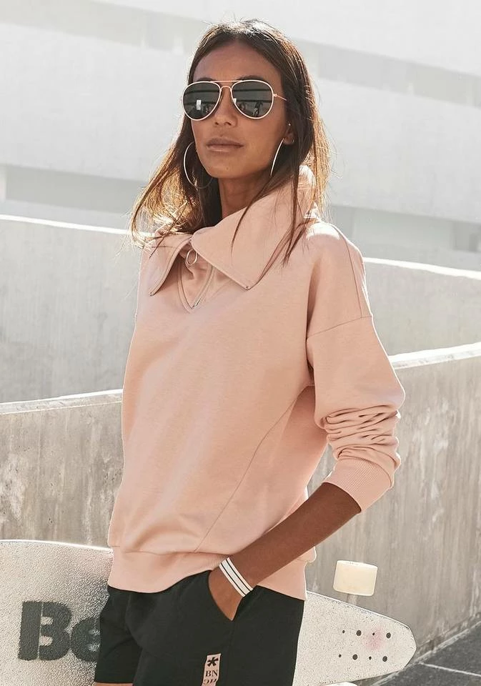 Im weichen Sweatshirt von Bench geht es auf sportliche Weise maximal gemütlich zur Sache! Dank der bequemen Oversize-Passform im Cropped-Schnitt versprüht der Sweater zeitgenössische Streetstyle-Ästhetik in Reinform. Der Stehkragen tut dem natürlich keinen Abbruch, ebenso wenig der Logoprint auf seiner Rückseite. Gerippte Bündchen runden die Gesamtoptik ab. In der soften Jersey-Qualität mit ganz viel Baumwolle ist nicht zu übersehen, dass du richtig Style hast! Sieht besonders gut aus mit dem T-Shirt und den Shorts oder Sweatpants aus der Kollektion – das Sweatshirt von Bench!