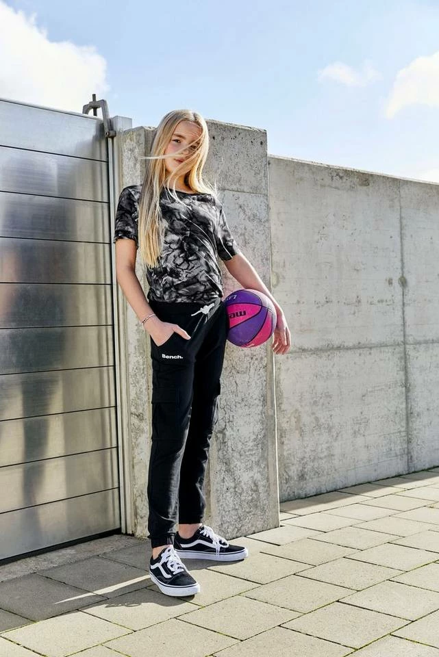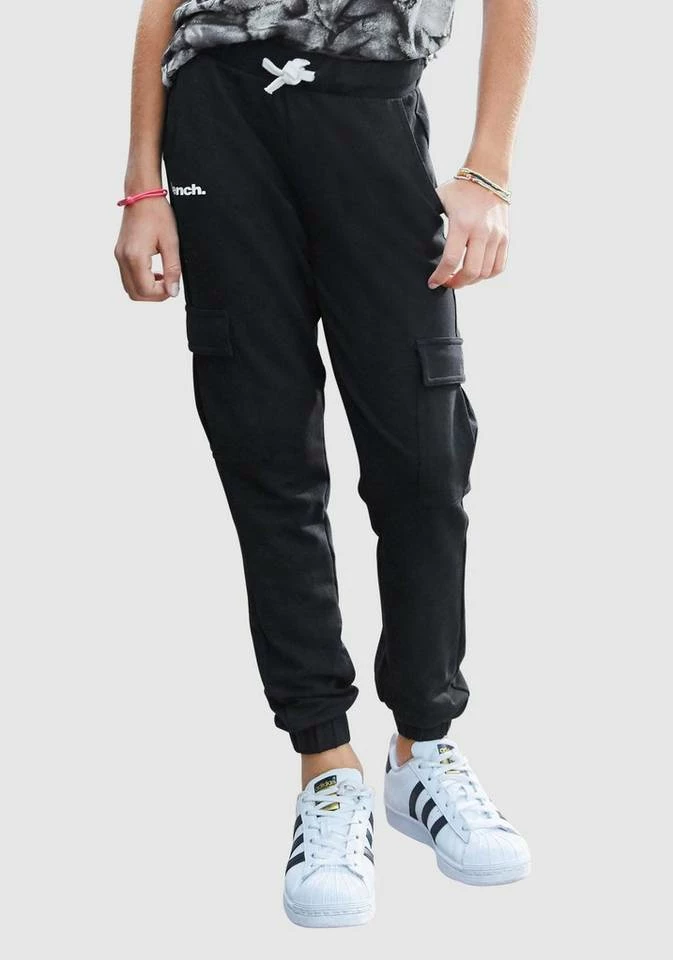 Die Jogpants von Bench im Cargo-Look sind eine tolle Ergänzung für die Garderobe aktiver Kids. Ausgestattet mit einem komfortablen Bund und Bündchen an den Abschlüssen bieten sie jederzeit einen komfortablen Sitz. Die angenehme, leicht dehnbare Qualität und die lockere Passform sorgen für einen tollen Tragekomfort. Neben dem schmalen Beinverlauf trägt auch der Markenprint vorn zu der lässigen Optik bei. Das kontrastierende Tunnelzugband kann nach Belieben verstellt werden. Neben seitlichen Einstecktaschen verfügt die Cargohose über praktische aufgesetzte Taschen mit Klettverschlüssen. Mit einem T-Shirt, einem Kapuzensweater und Sneakers wird sie schnell zu einem coolen Outfit zusammengestellt. Egal, ob beim Sport oder beim Chillen: die Jogpants von Bench sind dabei.