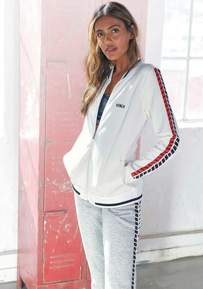 Ein Teil für jeden Tag – das ist die College-Sweatjacke von Bench! Dabei ist sie lässig und modisch zugleich. Durch die feine Baumwollqualität, den Stehkragen und den durchgehenden Reißverschluss bringt die Jacke jeden Tragekomfort mit, den du dir wünschst. Großes Plus: Sie hat praktische Eingrifftaschen, die seitlich aufgenäht sind und jede Menge Platz bieten. Der sportliche Schnitt wird durch Rippbündchen mit farblich abgesetzten Streifen am Kragen und am Bund sowie kontrastierende Streifen entlang der Ärmel komplettiert. Skinnyjeans, lässiges Shirt und Sneaker dazu und der Tag kann starten – mit der College-Sweatjacke von Bench!