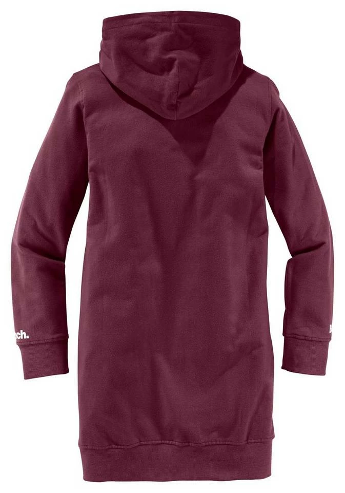 Charmant, sportlich, relaxt: das Kapuzensweatkleid von Bench! In stylischer Attitüde sorgt das Kleid bei kleinen und großen Mädchen für Begeisterung. Das coole Design des Longpullis setzt sich aus vorverlegten Seitennähten mit dekorativen Reißverschlüssen, kleinen Logoprints an den Ärmeln und gemütlichen, breiten Bündchen zusammen. Komfortabel und bequem? Kein Problem für den Hoodiedress mit der weichen Baumwollsweatqualität.