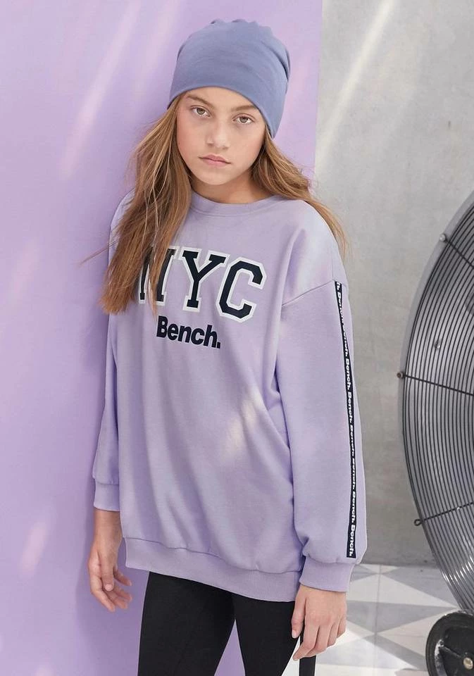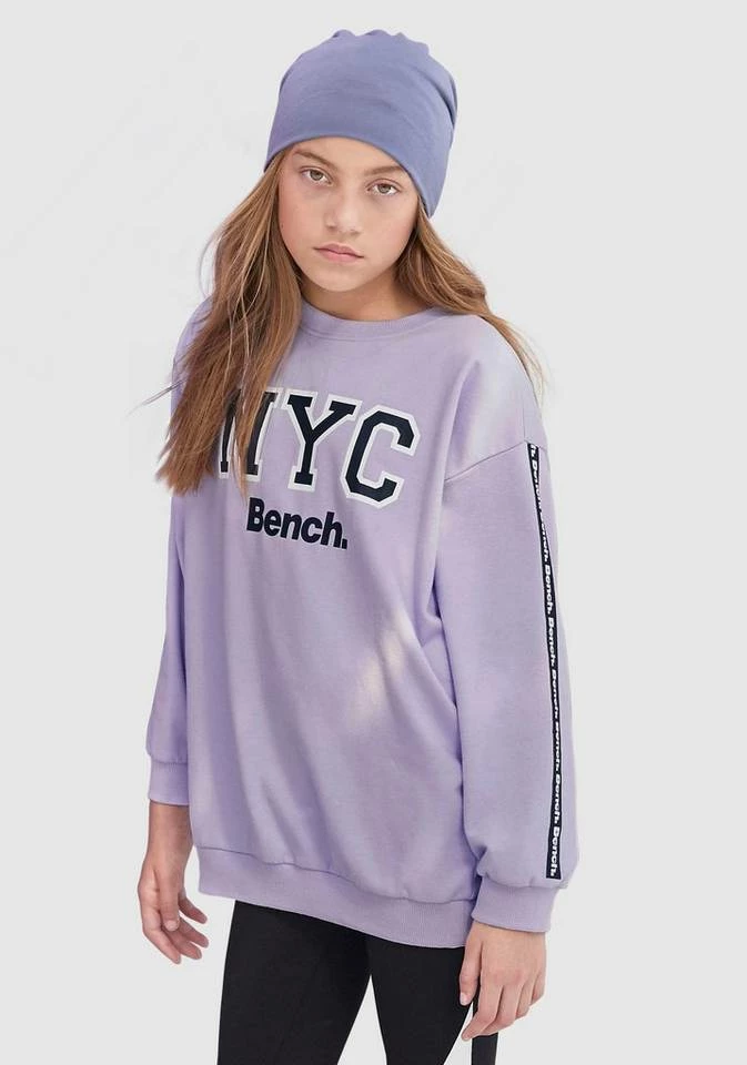 Mehr Lässigkeit geht kaum: Das Sweatshirt von Bench gefällt mit seinem weiten und etwas längeren Schnitt. Mädchen mit Sinn für Mode werden auch die coolen großen Prints vorn und die angesagten Logotapes auf den Ärmeln lieben sowie den klassischen Rundhalsausschnitt. Damit bei all dem tollen Style das Tragegefühl nicht zu kurz kommt, ist der Pulli aus einem sehr angenehmen Sweat kreiert. Zusammen mit einer Skinny-Jeans macht er mächtig Eindruck. Das begeistert Mädchen: das Sweatshirt von Bench.