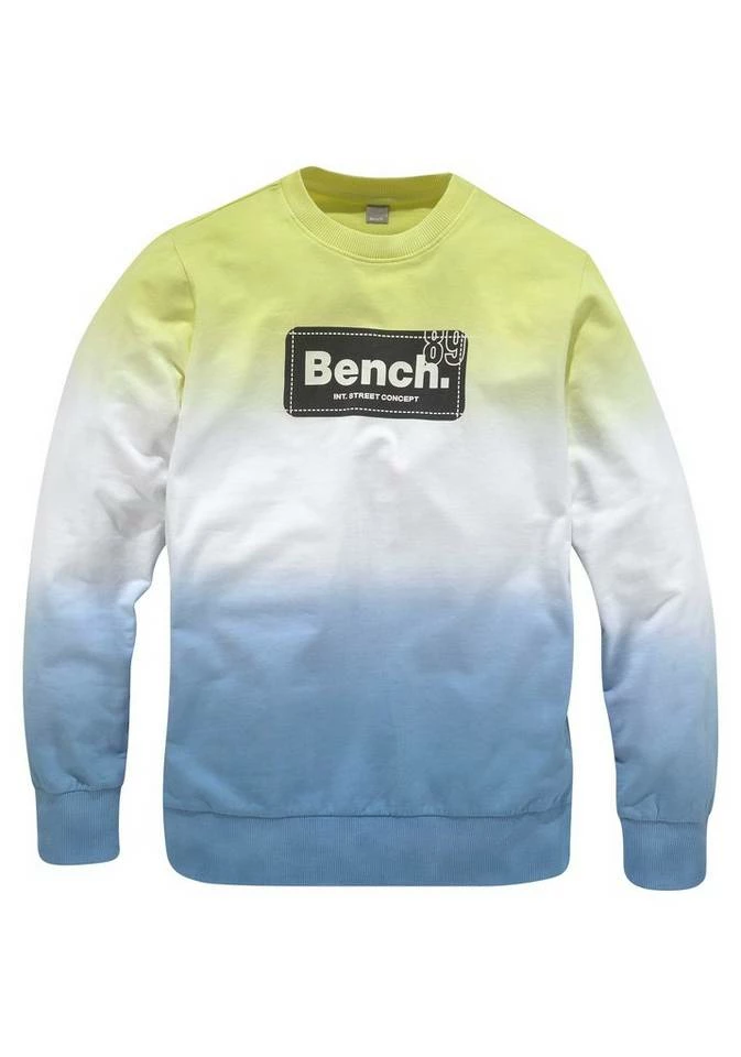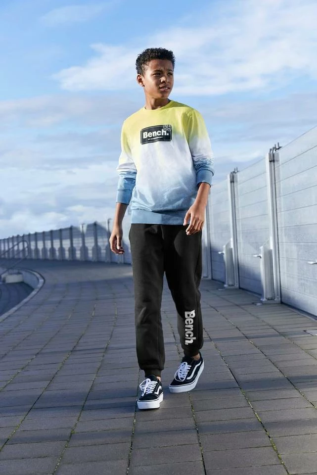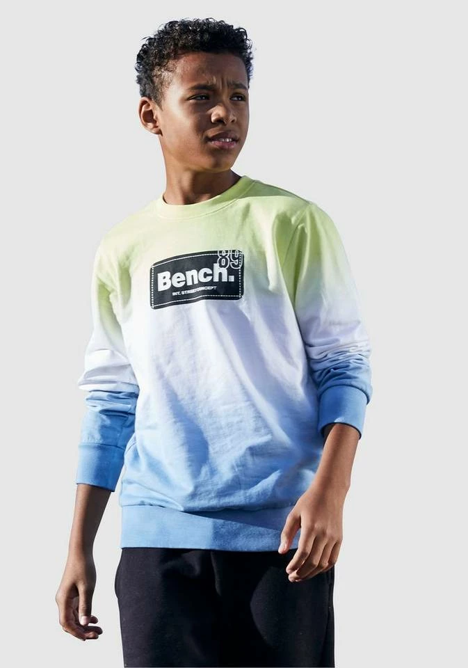 Da das Batikverfahren jedes Stück einzigartig macht, erhalten die Kids mit dem coolen Sweatshirt von Bench im Dip-Dye-Look ein echtes Einzelstück. Auf der Vorderseite prangt zudem ein großer Markenschriftdruck. Für einen tollen Tragekomfort ist der Pulli in angenehm leichter Sweatqualität gearbeitet, leger geschnitten und an den Säumen mit gerippten Bündchen versehen. Zu Jeans und Sneakers passt er am besten. Entspannte Looks für entspannte Jungs: mit dem Sweatshirt von Bench in Dip-Dye-Optik.