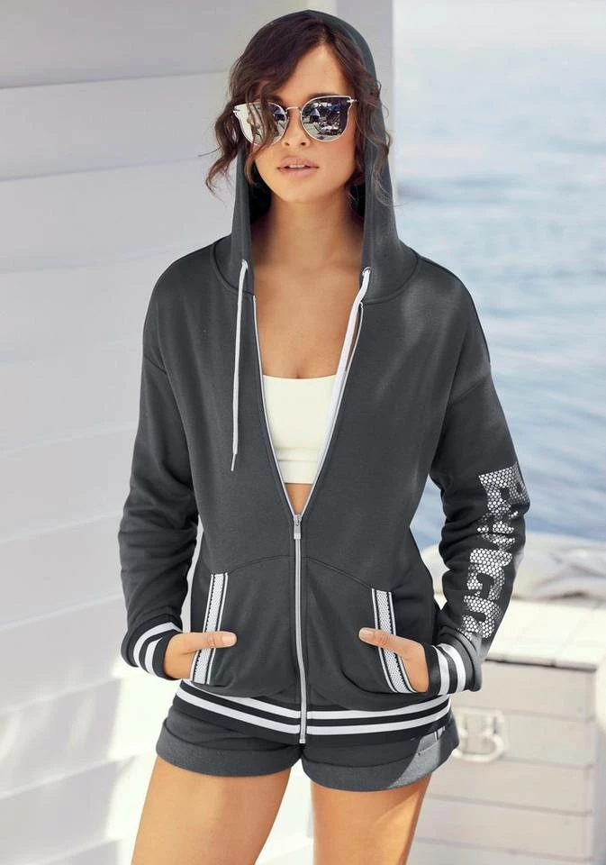Bench. Sweatshorts mit Logodruck in Metalloptik Creme, Stein