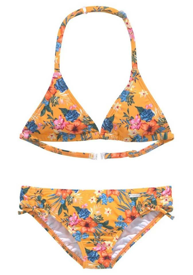 Für Sonnenanbeterinnen hervorragend geeignet: der Triangel-Bikini von Bench. Sein toller tropischer Druck lässt dich sofort von Sandstränden und dem weiten Ozean träumen, während sich die individuell im Nacken und im Rücken verstellbaren Träger des Bikinioberteils um dein Wohlbefinden kümmern. Die Bikinihose entzückt mit kleinen Zierschleifen an den Seiten und lässt dank des etwas knapperen Schnittes viel Sonne an deine Haut kommen. Pack den Triangel-Bikini von Bench ein und dein Urlaub ist gebongt.